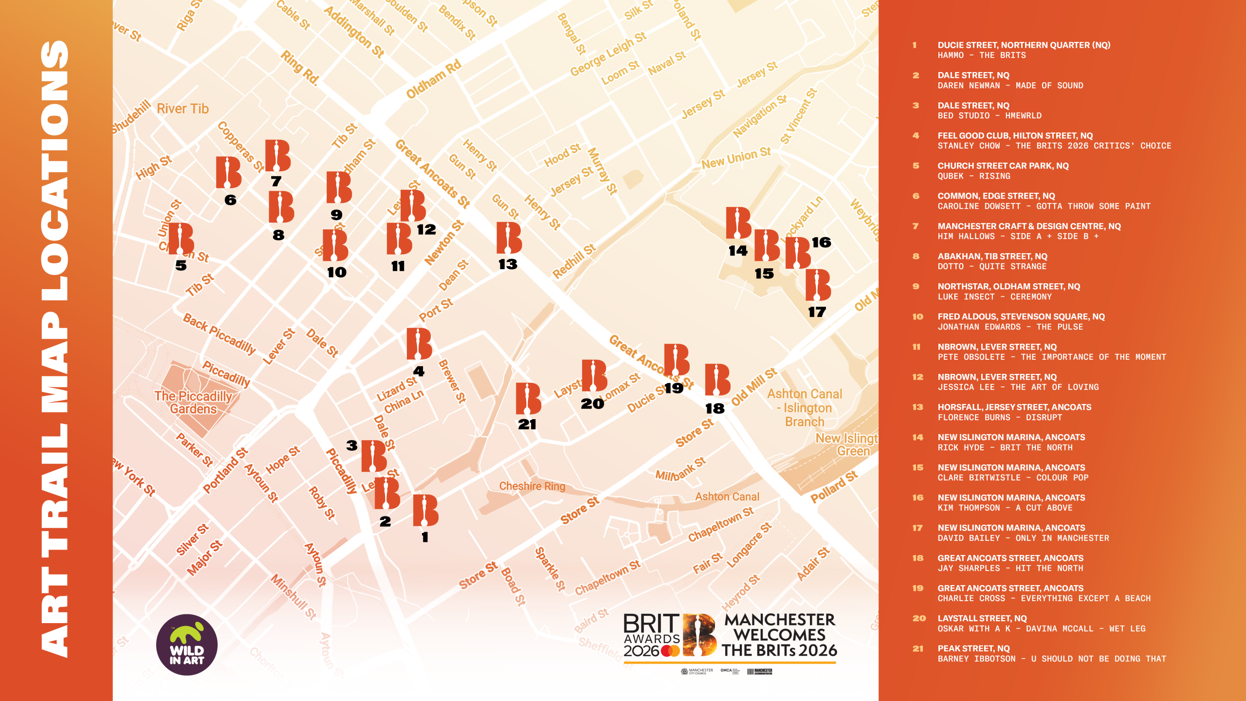 Celebrating Manchester’s vibrant creative community, the trail invites audiences to explore the city through art in the build-up to the BRIT Awards, placing local talent front and centre across some of its most well-known areas.